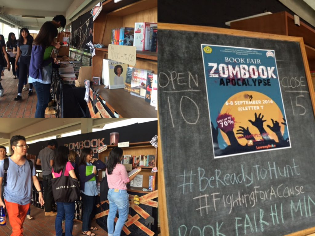 Bookfair merupakan salah satu program tahunan Divisi Penelitian dan Pengembangan (Litbang) Himpunan Mahasiswa Program Studi Ilmu Hubungan Internasional (HMPSIHI). Kegiatan ini dimaksudkan untuk menambah ketertarikan dan minat baca setiap mahasiswa di Program Studi Ilmu Hubungan Internasional UNPAR. Bookfair tahun ini diadakan pada 6-8  September 2016 di Taman FISIP dan mengambil tema “Zoombook Apocalypse“. Tema unik ini diambil dengan tujuan menggambarkan para mahasiswa yang datang mengunjungi bookfair sebagai zombie yang tertarik pada buku-buku yang digambarkan manusia. Selain itu, diharapkan dengan tema yang unik ini, ketertarikan mahasiswa untuk mengunjungi bookfair pun semakin meningkat. Bekerjasama dengan Periplus, Reading Lights, dan Lawang Buku, panitia Bookfair pun menawarkan potongan harga hingga 70%.